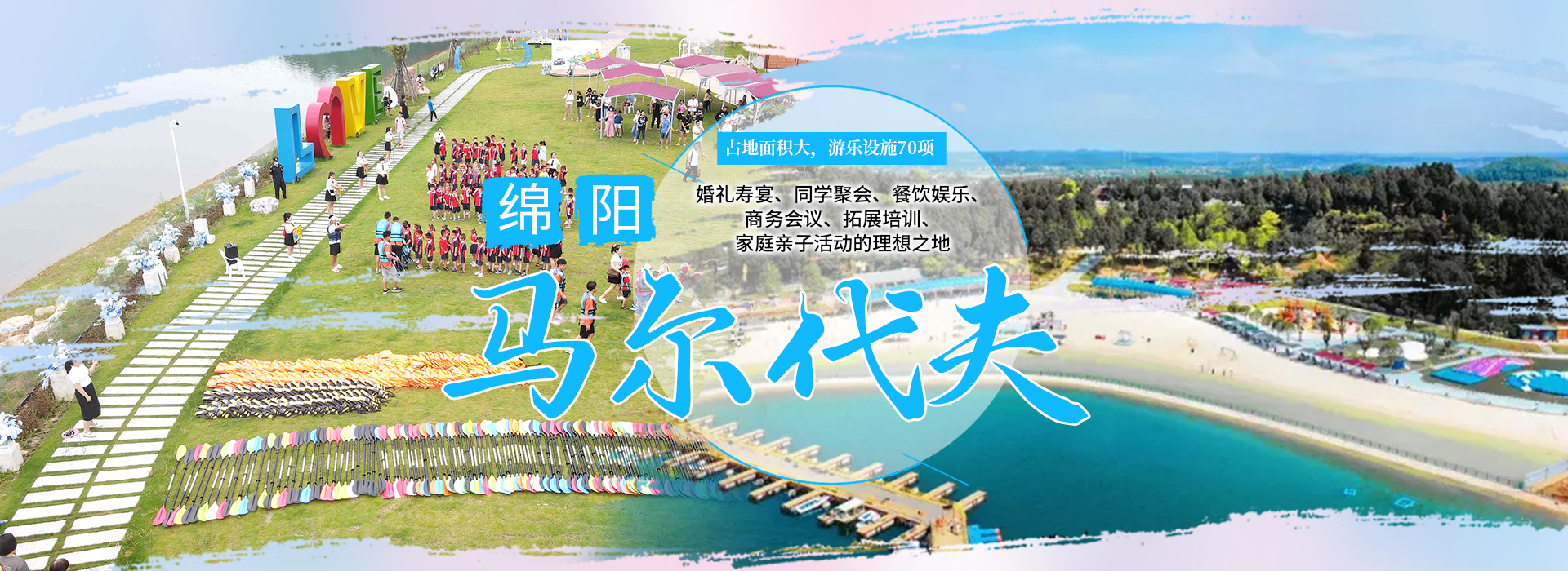綿陽(yáng)嘉成文化旅游有限公司是一家旅游開發(fā)公司,成立于2019年。 親水灣沙灘樂(lè)園項(xiàng)目由綿陽(yáng)嘉成文化旅游有限公司開發(fā)運(yùn)營(yíng),位于國(guó)家級(jí)水利風(fēng)景區(qū)——綿陽(yáng)市仙海水利風(fēng)景區(qū),距綿陽(yáng)市區(qū)15公里,車程約半個(gè)小時(shí),是依托沉抗水庫(kù)建設(shè)的仙海風(fēng)景區(qū)重點(diǎn)旅游項(xiàng)目。進(jìn)入仙海風(fēng)景區(qū)上坡向左進(jìn)入環(huán)湖路前行1000米。項(xiàng)目總占地220畝,其中核心沙灘樂(lè)園占地100畝,現(xiàn)建成沙灘休閑、淺灘嬉水、水上運(yùn)動(dòng),親子蹦蹦云、網(wǎng)紅多人秋千、人力過(guò)山車、水幕秋千、團(tuán)隊(duì)拓展等項(xiàng)目十余個(gè),還開設(shè)有特色中餐、仙海火鍋魚,自助燒烤等飲食項(xiàng)目。 近觀青山綠水,遠(yuǎn)眺碧波蕩漾,清晨朝霞映翠、傍晚水天一色。親水灣沙灘主題樂(lè)園有可容納200人的沙灘會(huì)議室和30人的小型會(huì)議室;棋牌室16間; 商務(wù)KTV;餐飲中心可同時(shí)容納300人用餐;篝火晚會(huì)場(chǎng)地等,是婚禮壽宴、同學(xué)聚會(huì)、餐飲娛樂(lè)、商務(wù)會(huì)議、拓展培訓(xùn)、家庭親子活動(dòng)的首選之地。